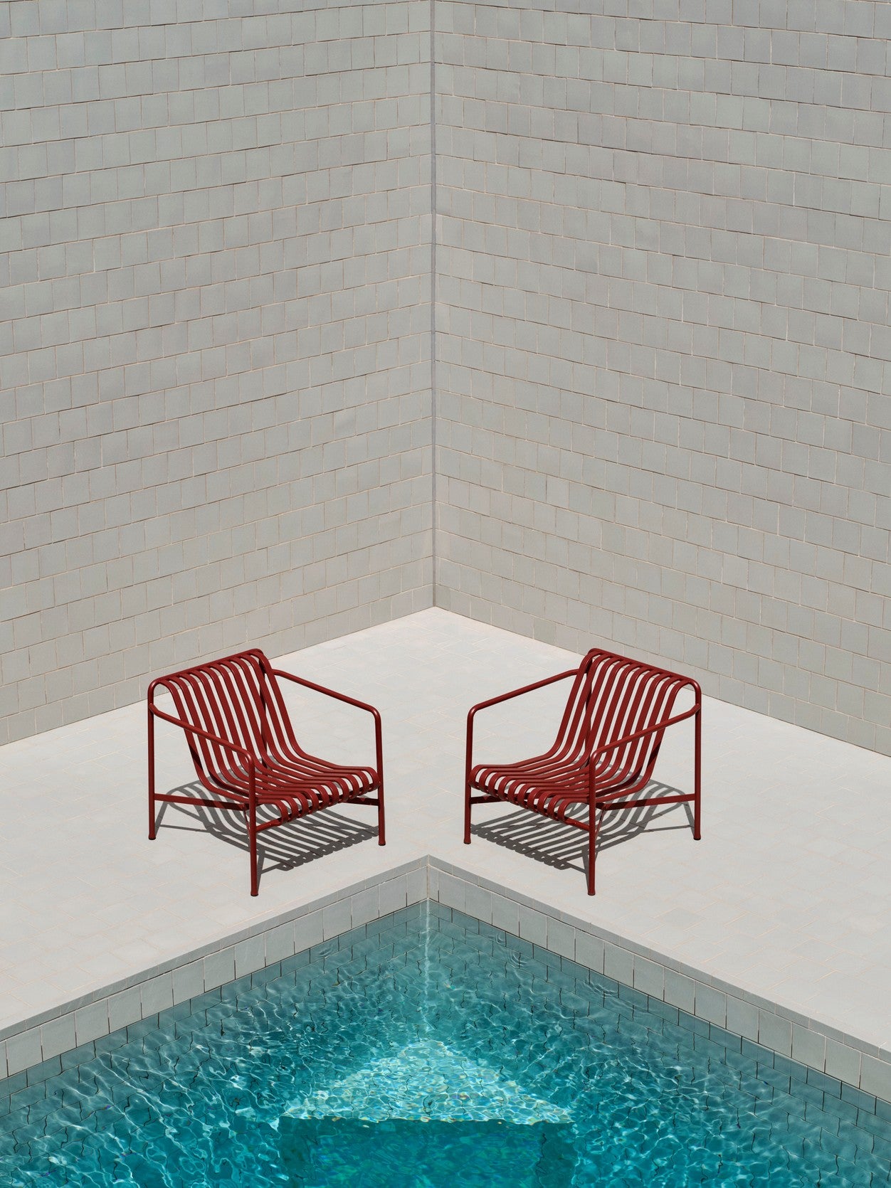 The sleek yet robust Palissade lounge chair is a member of HAY’s versatile outdoor furniture collection. Palissade outdoor furniture features a strong, graphic design that consists of simple steel tubes and slats. Ronan and Erwan Bouroullec worked with the collection for two years and created a range of simple, balanced pieces that are well suited for terraces, balconies, gardens, cafés and public spaces. The Palissade chairs, tables and benches are sturdy but elegant, and perfect for outdoor use, since wind and water will pass through the galvanized steel frame. The Palissade furniture was designed to age well and its muted colour palette adds to the timeless and versatile appearance.