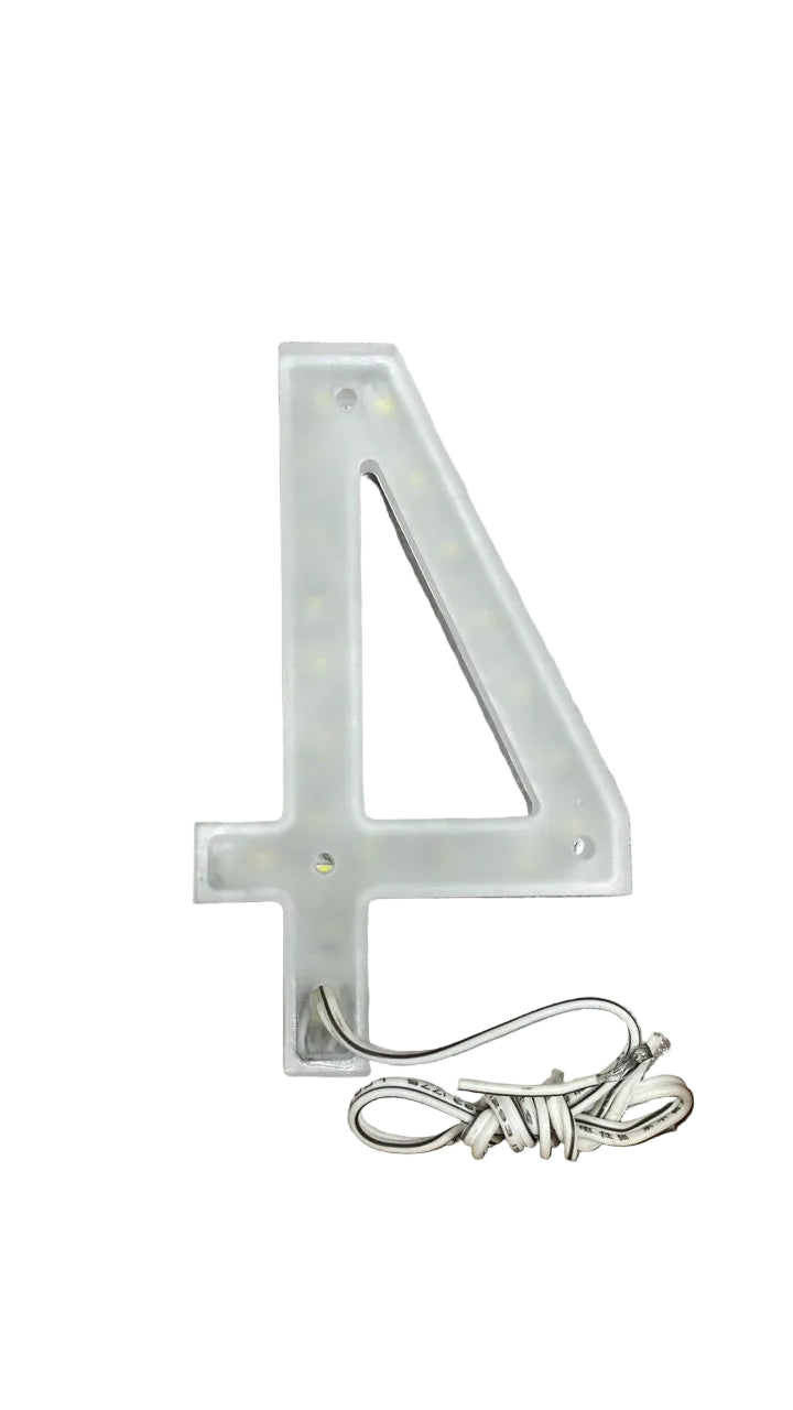 Crafted with solid, brushed aluminum, these numbers exude elegance. Their white LED panels, backed by a gentle glow, ensure excellent visibility, particularly during nighttime.