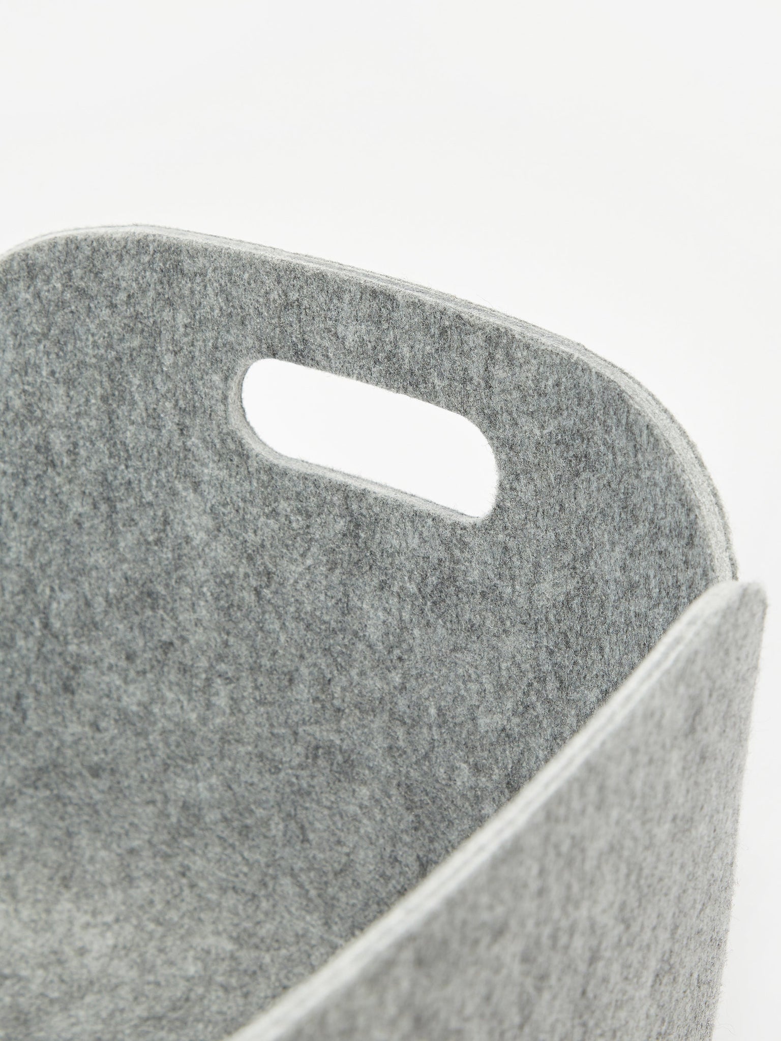The material is PET felt fibers. A percentage of the product comes from recycled plastic bottles, which are granulated, heated and blown like little fibers that are subsequently dyed. The fibers are worked together like mats, which can be pressed over heat-influenced forms that enables the material to maintain it’s shape.