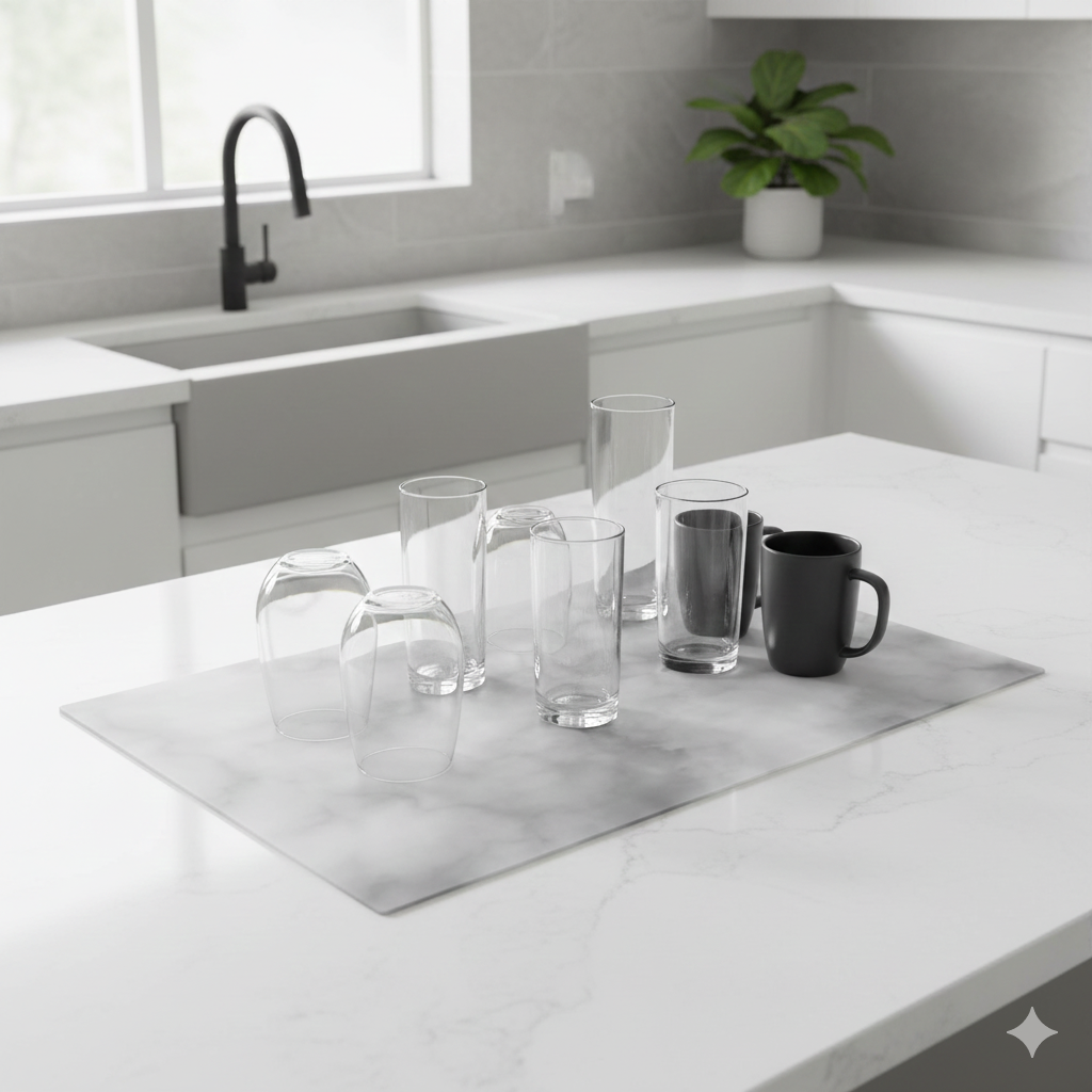 Transform your kitchen instantly. Say goodbye to unsightly scratches and hello to sleek, marble-inspired protection. Designed in Japan, our Silicone Kitchen Mat guards your surfaces with style and precision. Enjoy a smoother, anti-slip cooking area, heat-resistant up to 200°C for hot pots and pans. Easy to clean and effortlessly stylish, it's the upgrade your kitchen deserves