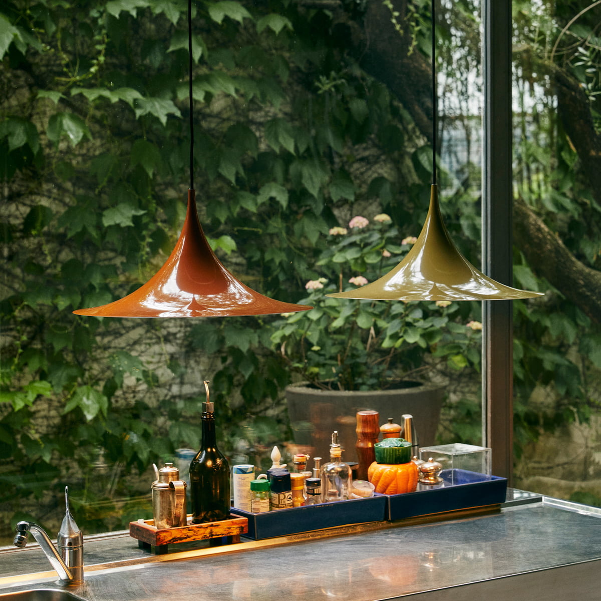 Die Semi Pendant ist eine einzigartige Pendelleuchte, die aus zwei Rücken an Rücken zusammengefügten Viertelkreisen besteht. Ihr markanter bogenförmiger, emaillierter Metallschirm erzeugt ein diffuses, kegelförmiges Licht, das sich ideal über einem Esstisch oder einer Küchenarbeitsfläche eignet. Mit ihrer leichten Form, ihrem einzigartigen zeitlosen Design und der Auswahl an Farben und Größen ist die Semi Pendant äußerst vielseitig und eignet sich sowohl für private als auch für öffentliche Räume.
